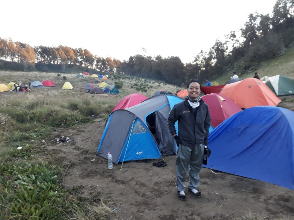 mendirikan tenda. Hari menginjak malam saat tenda kami berdiri kokoh. Hawa