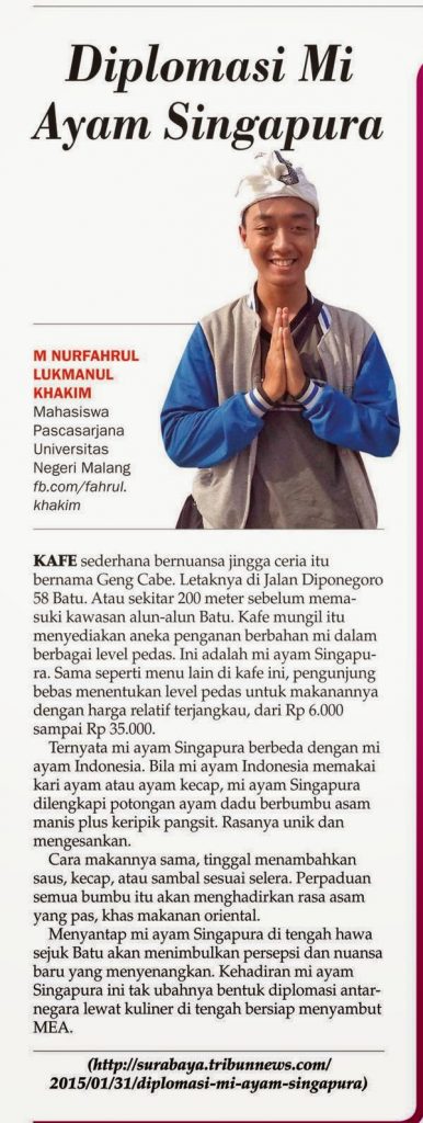 Singapura untuk menyantap mie ayam khasnya. Semua itu kini ada di Batu. Tak
